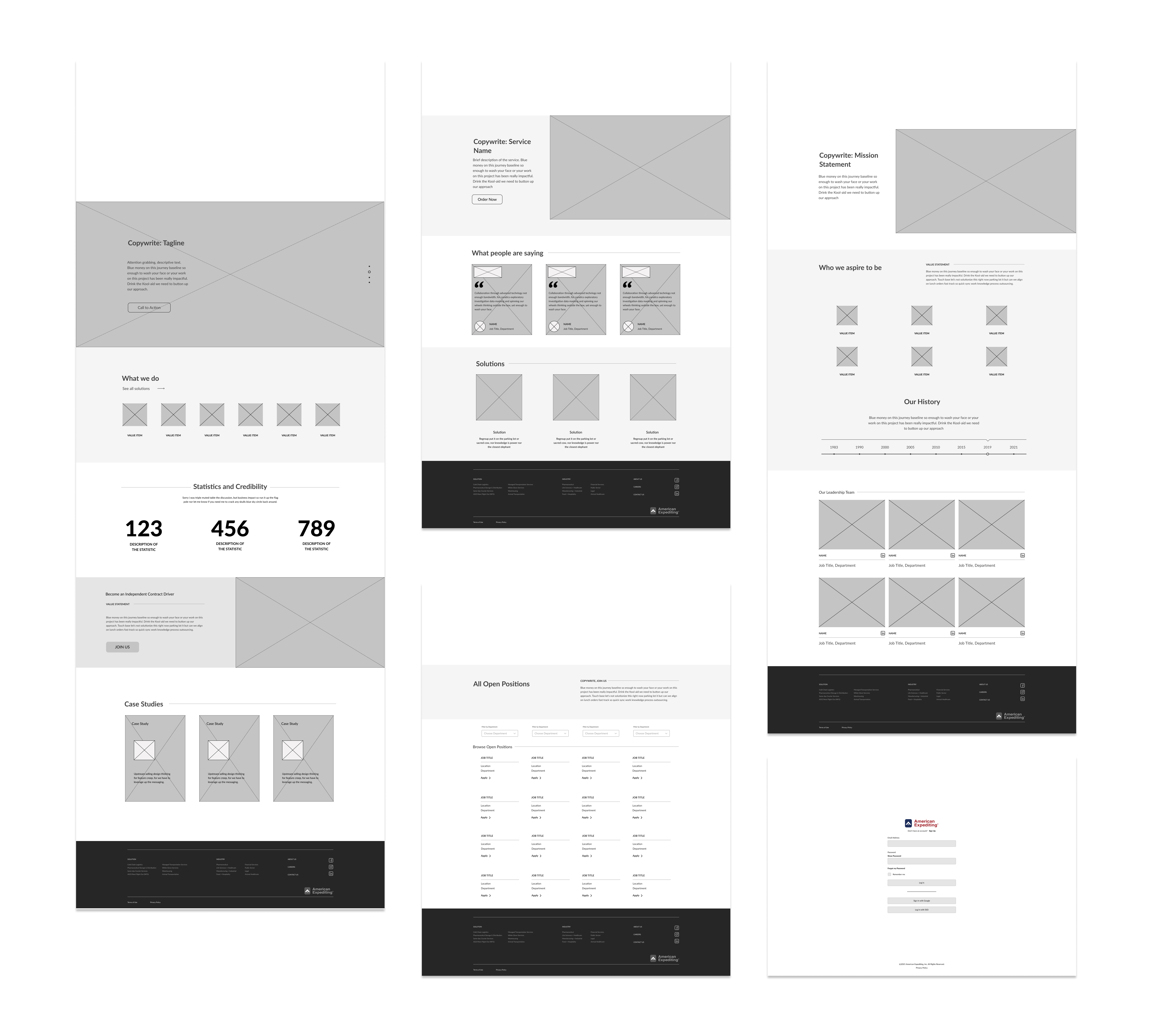 The team underwent iterative design-evaluate-discuss cycles to head towards our final design. Throughout, we leveraged our engagement with the American Expediting leadership team to discuss underlying systems, PR stratagem, and content logistics.