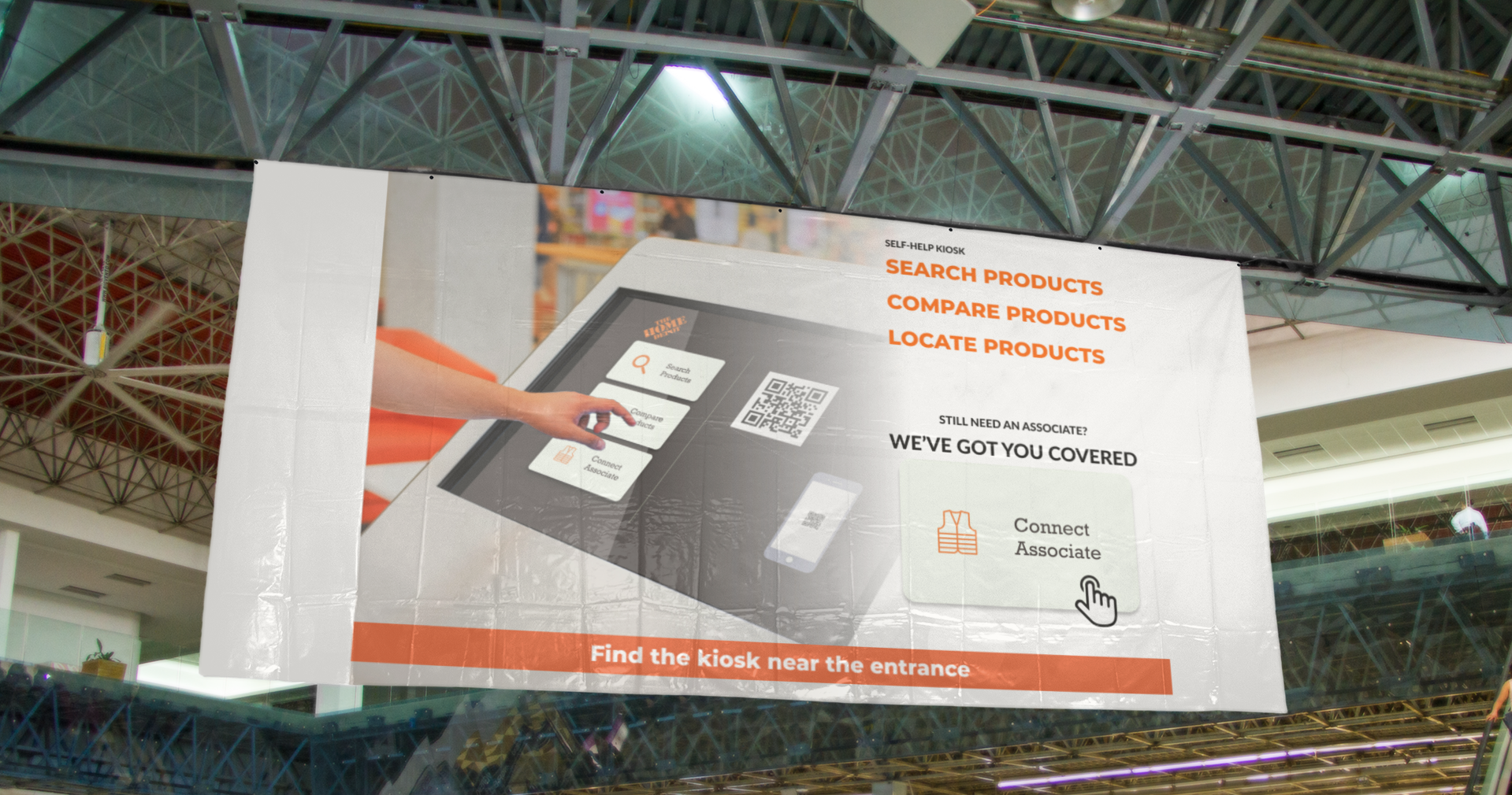 The designed solution leverages customer competency to bring parallel support features of the Home Depot mobile app closer to shoppers. We developed a smooth integration of visible physical artifacts onto the storefront where customers can overcome traditional obstacles to service accessibility.